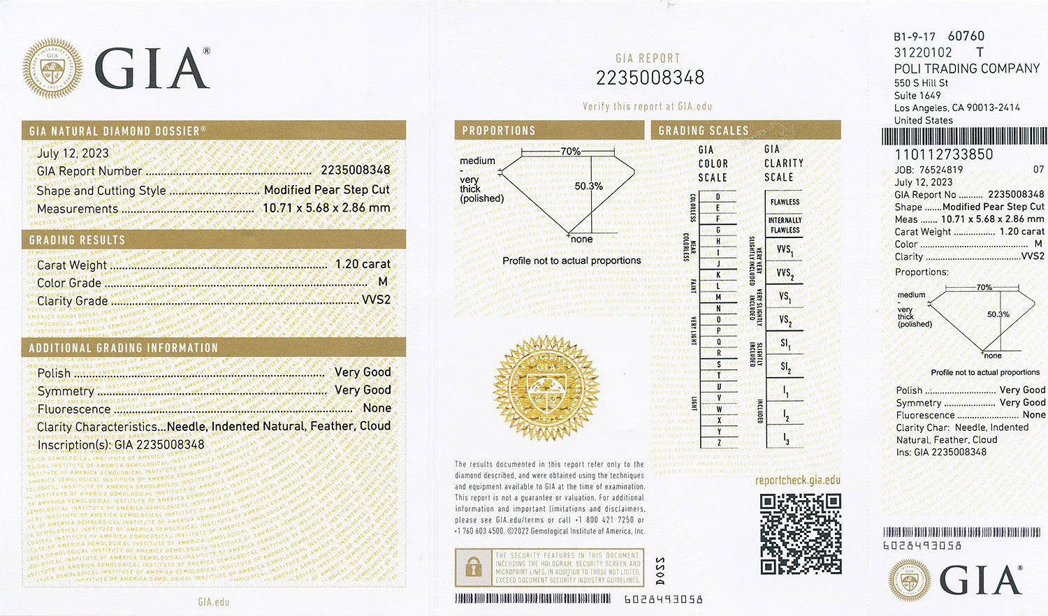 - 1.20 carat step cut pear shape natural diamond G.I.A. certified