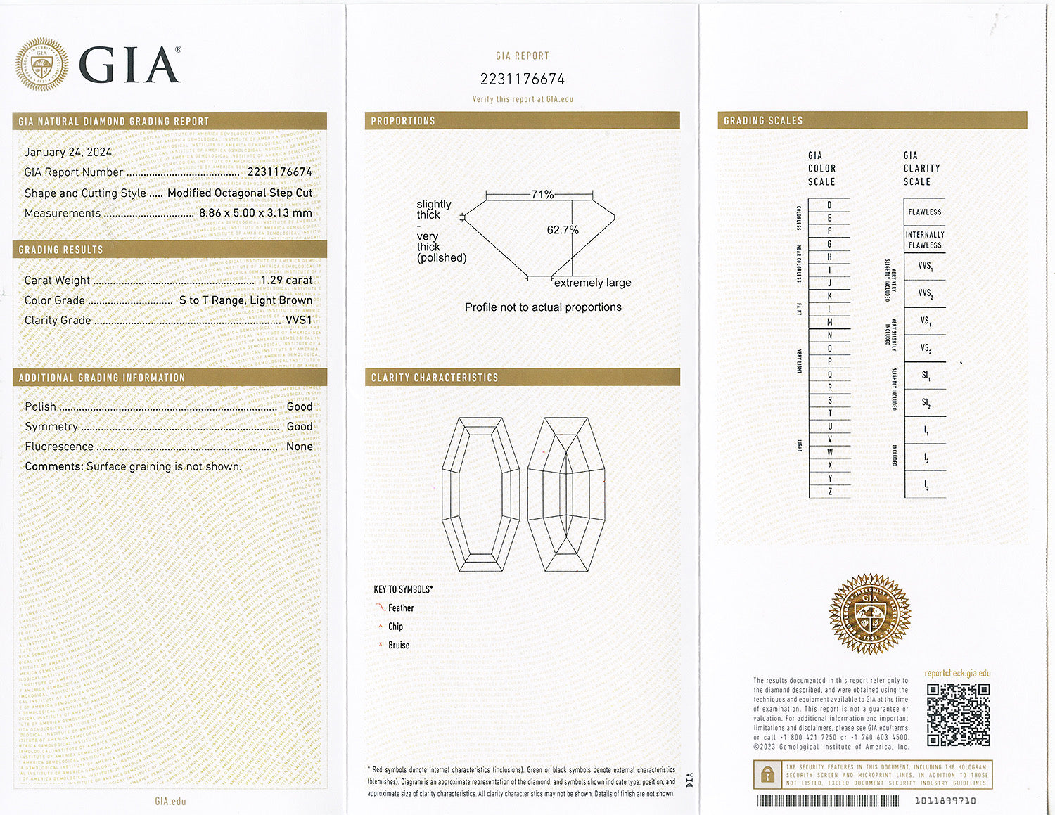 - G.I.A. certified VS quality champagne emerald cut diamond