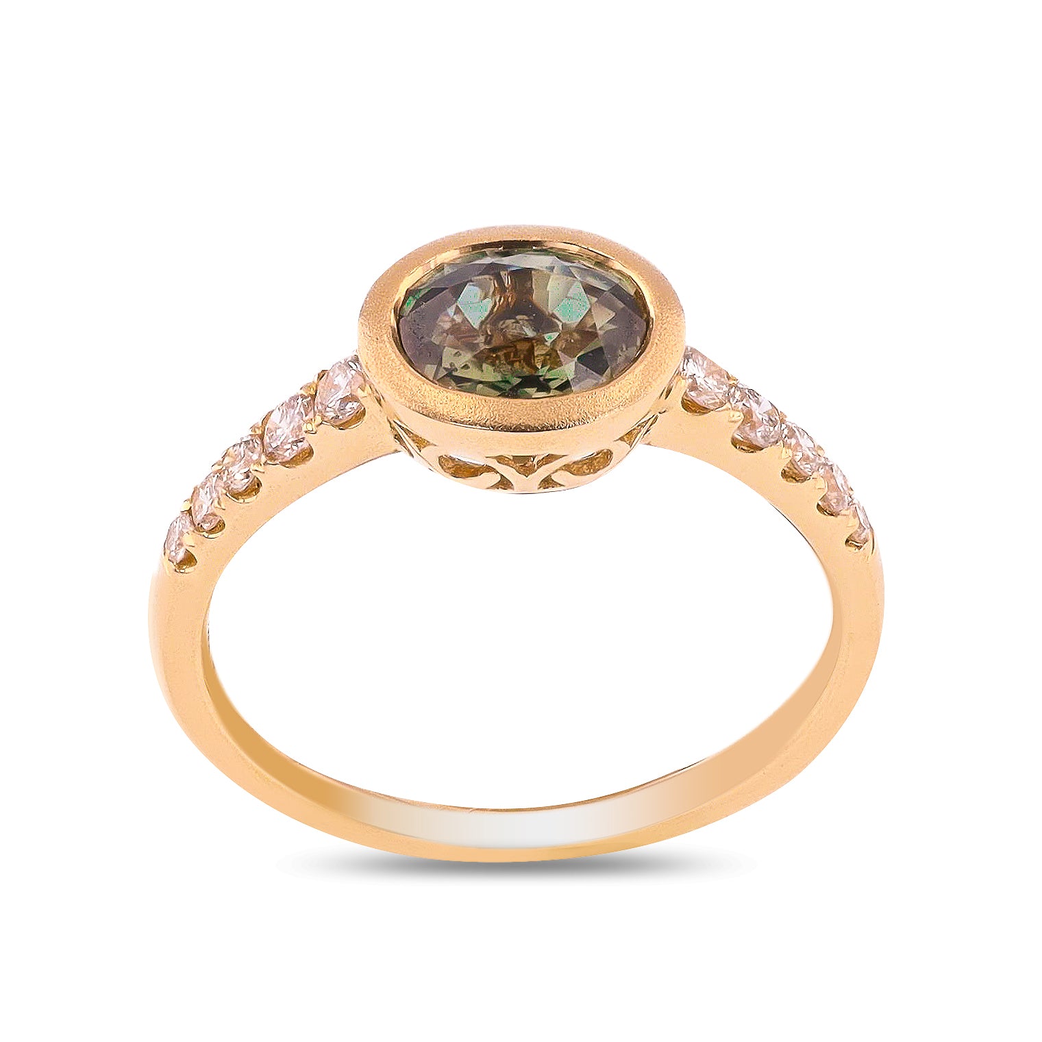 - 14k yellow gold, satin finish along the bezel