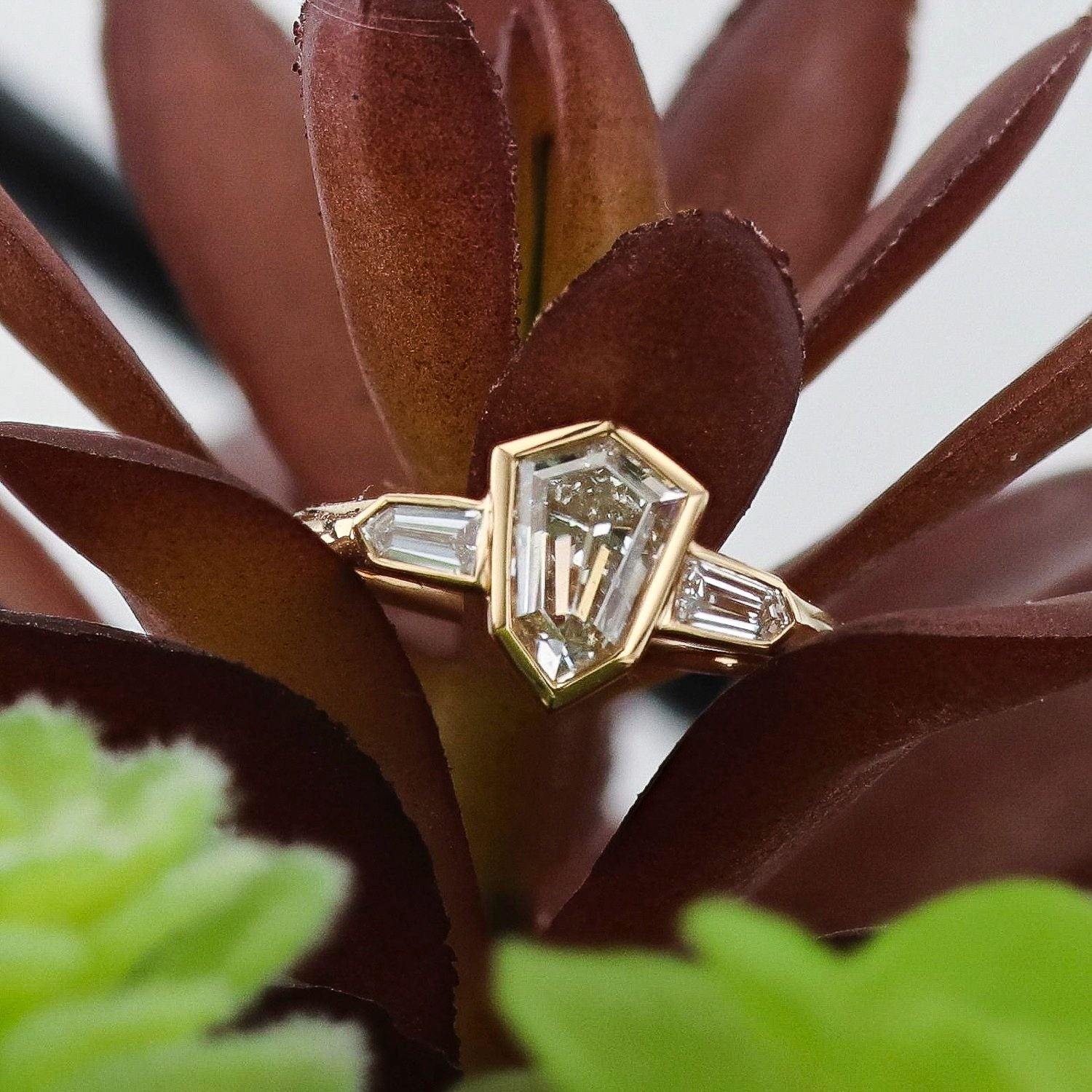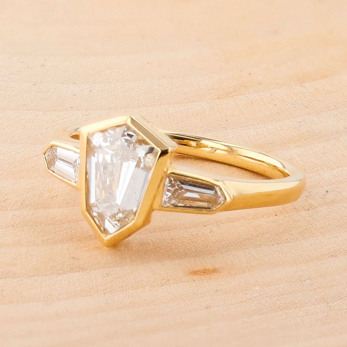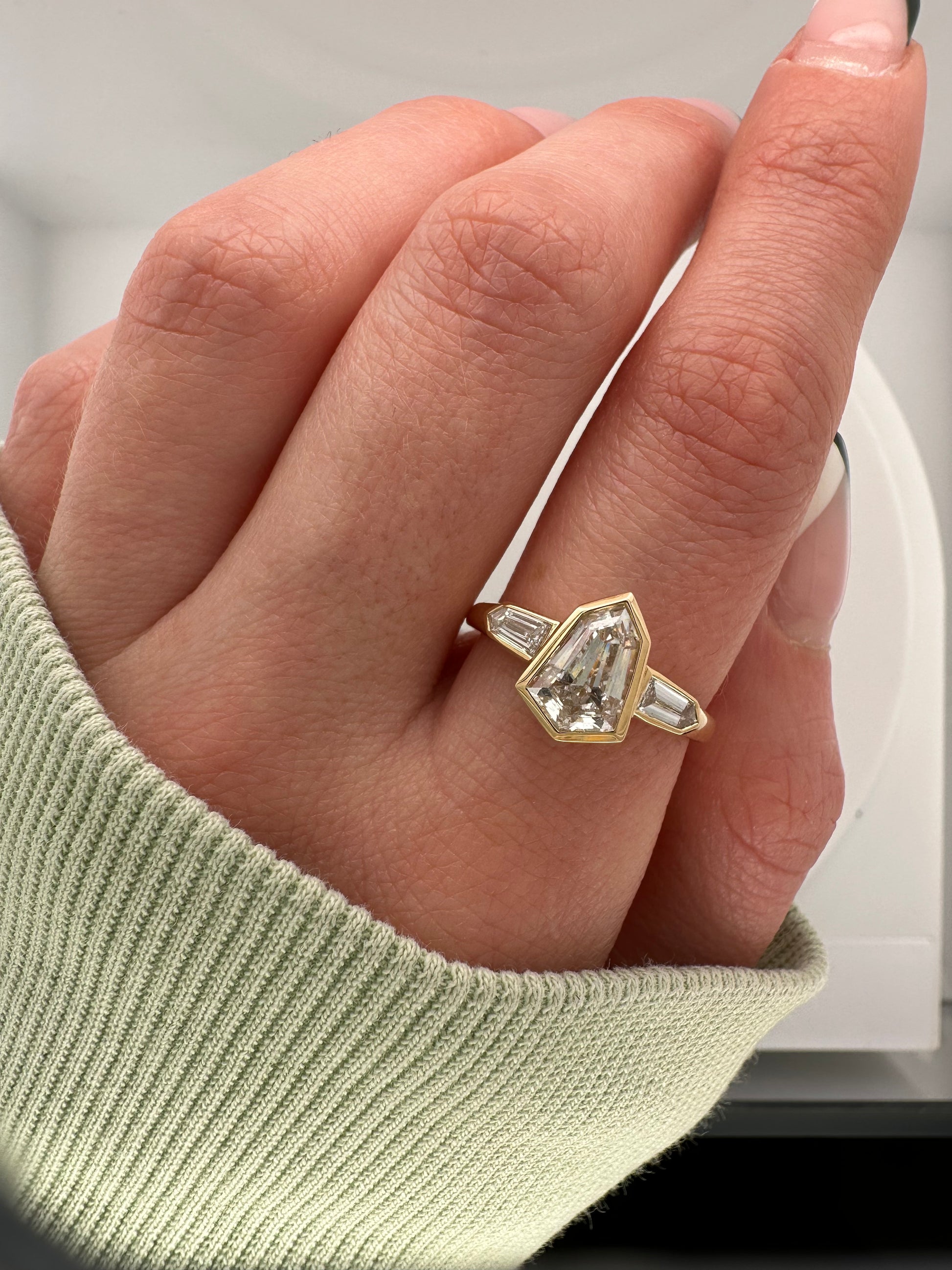 1.40 CARAT SHIELD CUT THREE STONE DIAMOND RING