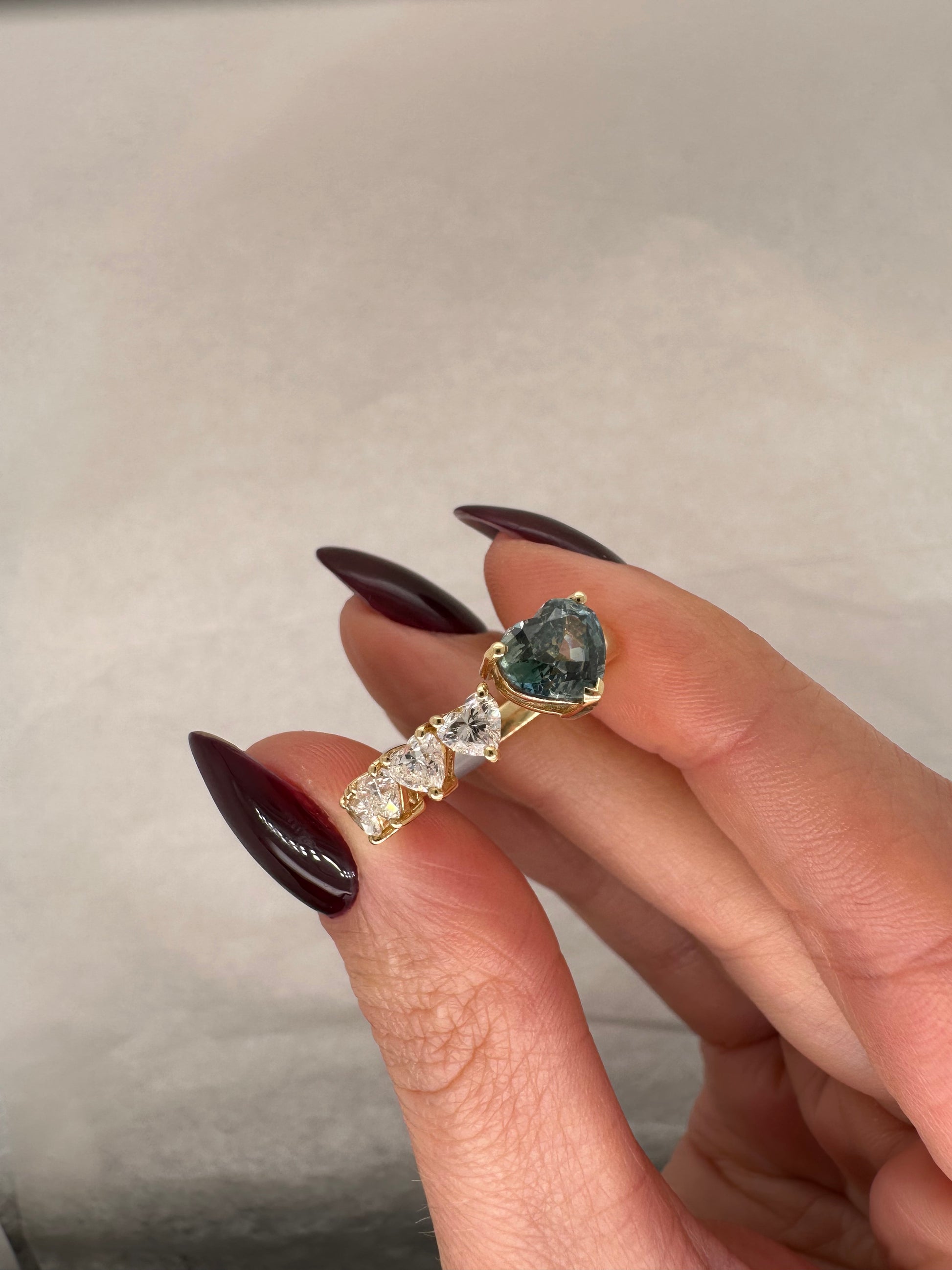 1.56 CARAT TEAL SAPPHIRE HEARTLINE RING