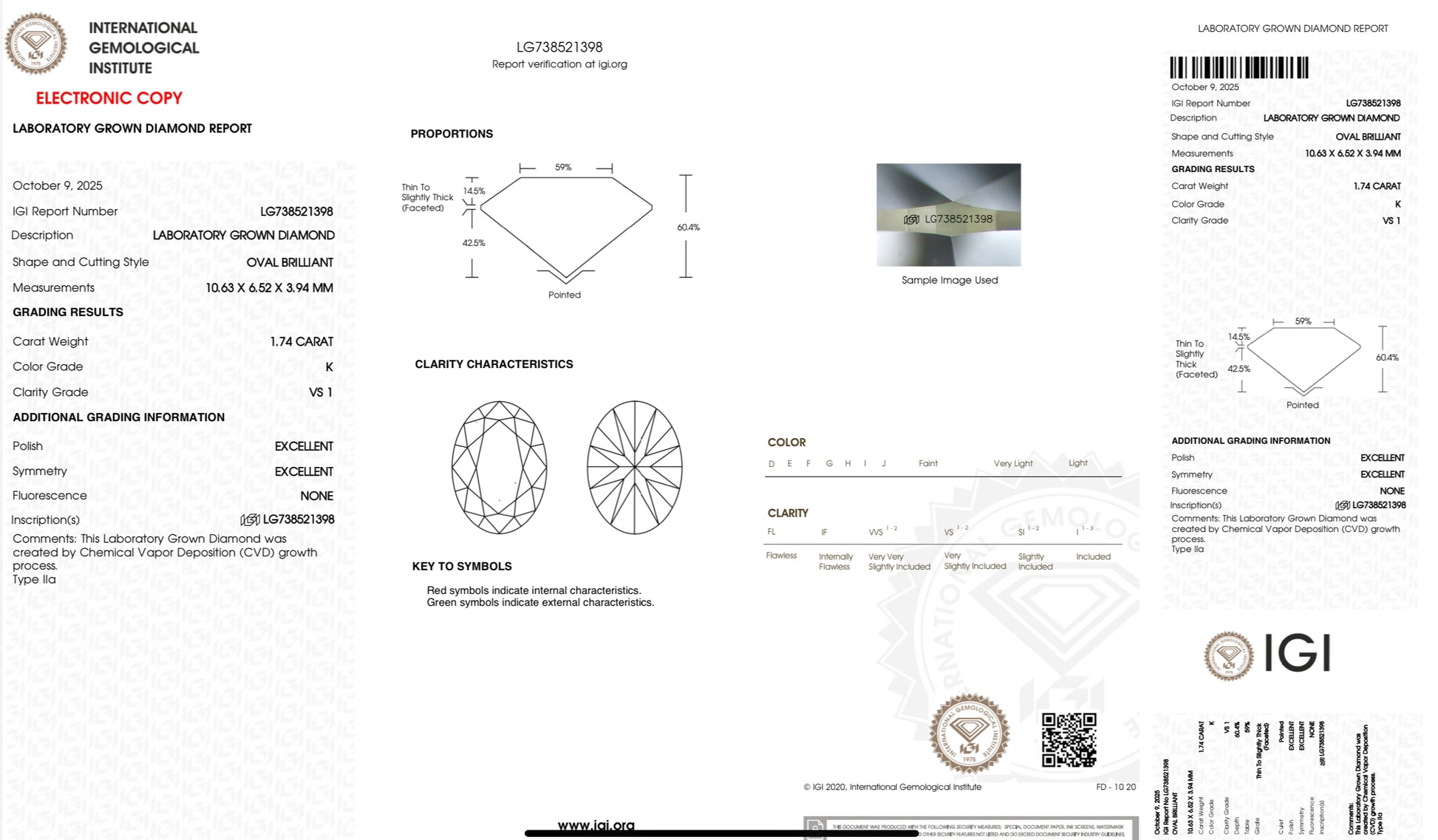 1.74 CARAT CHAMPAGNE LAB OVAL