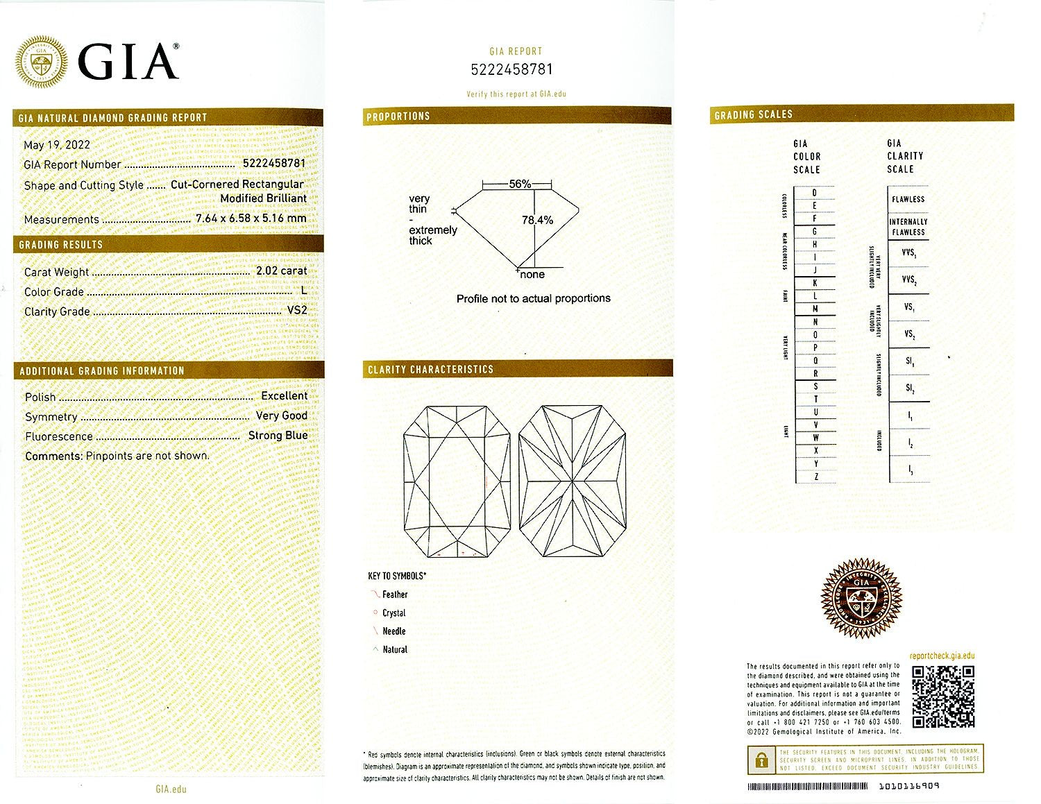 2.02 CARAT RADIANT CUT DIAMOND ENGAGEMENT RING