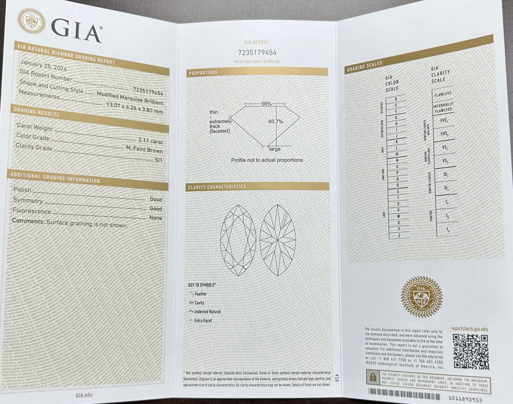 - 2.11 carat natural antique moval cut diamond (but looks like a 3 carat!)