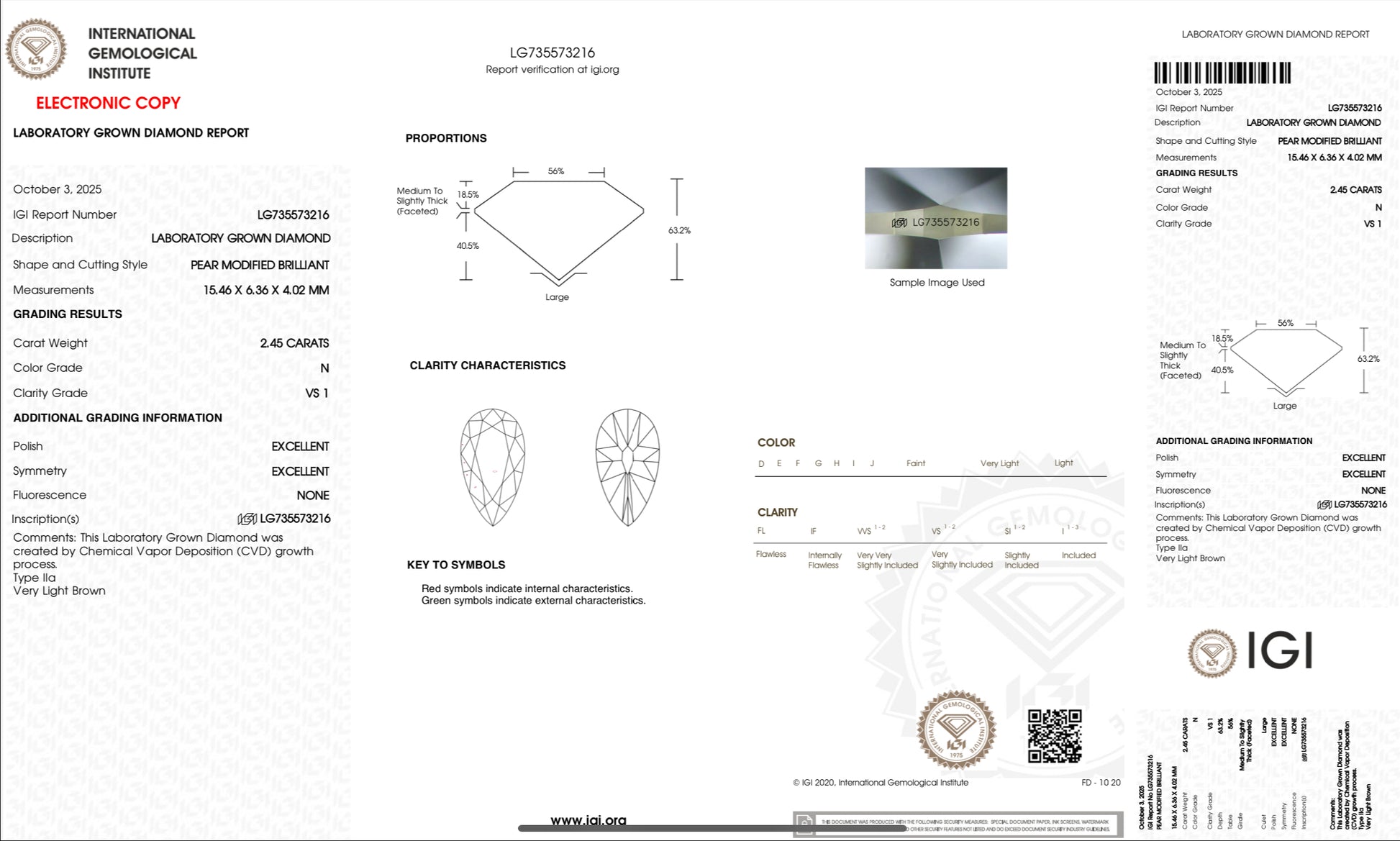 2.24 CARAT CHAMPAGNE ANTIQUE PEAR LAB DIAMOND