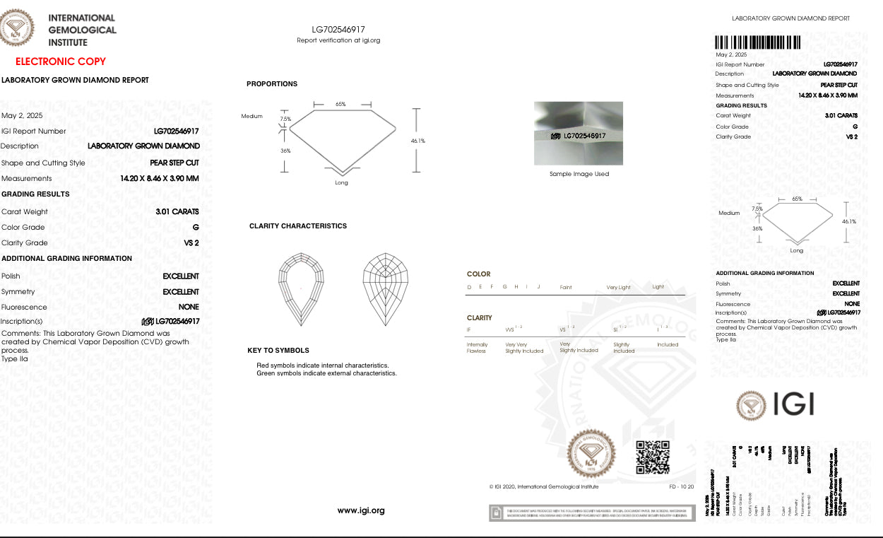 3.01 CARAT STEP CUT PEAR SHAPE LAB DIAMOND
