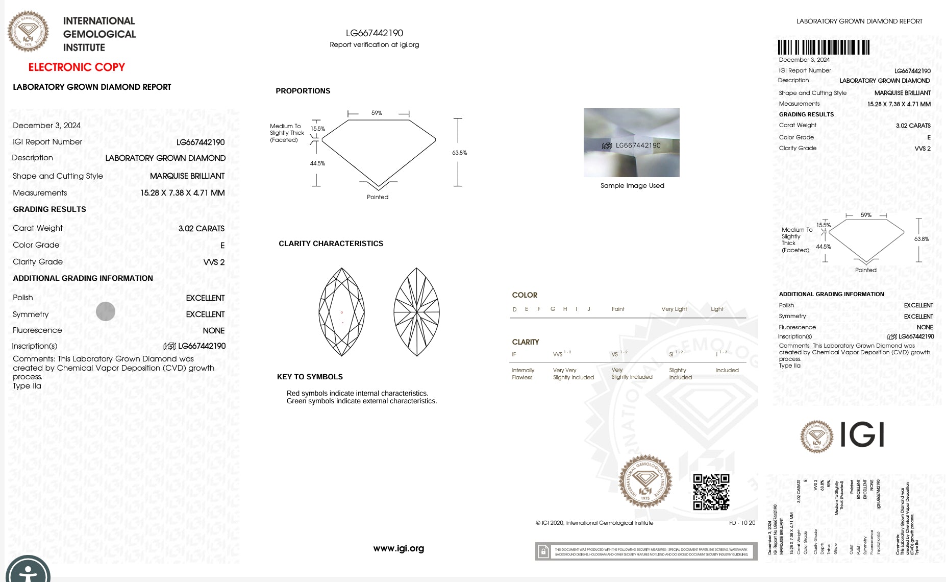 3.02 CARAT MARQUISE LAB GROWN DIAMOND