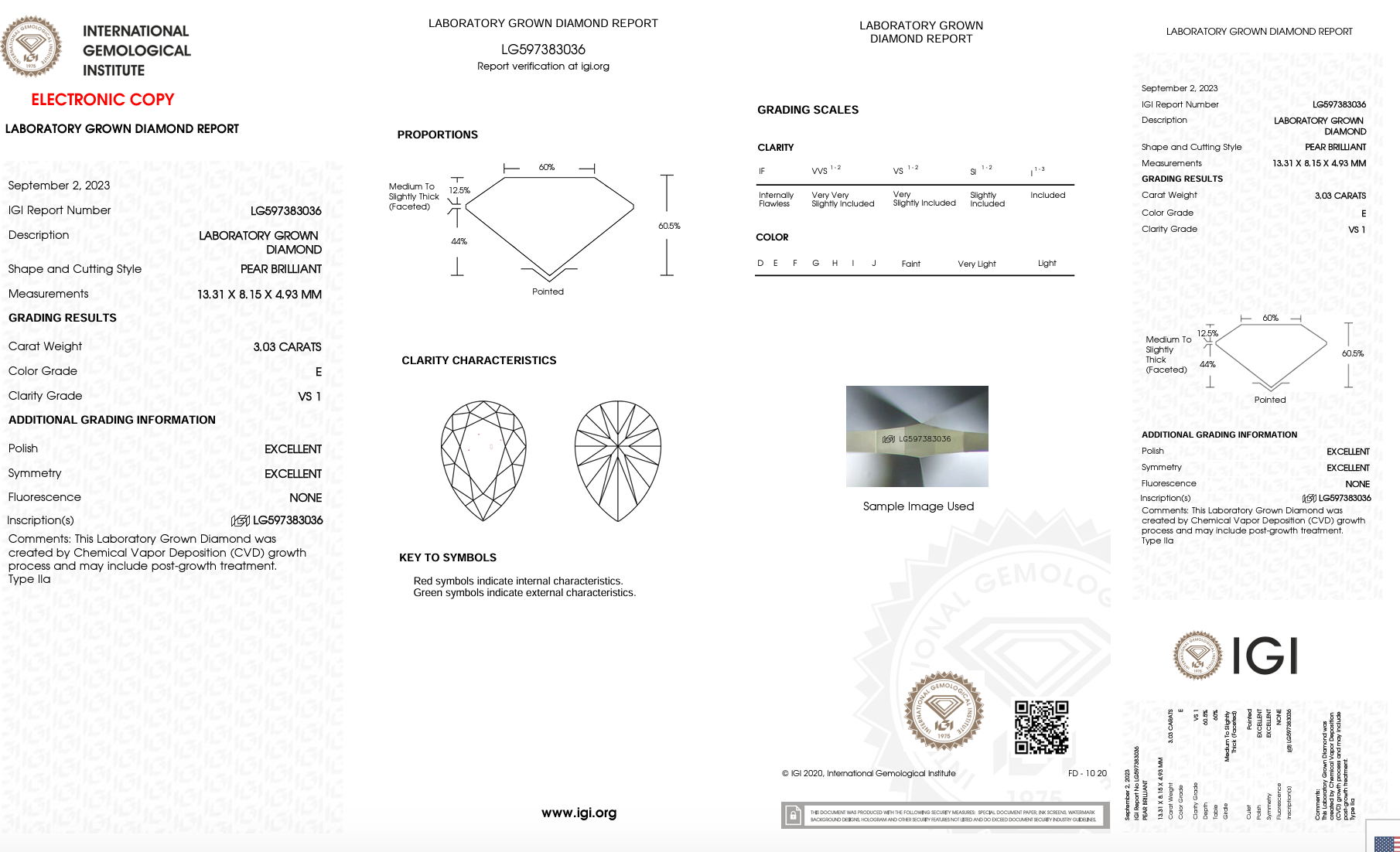 3.03 CARAT PEAR LAB GROWN DIAMOND