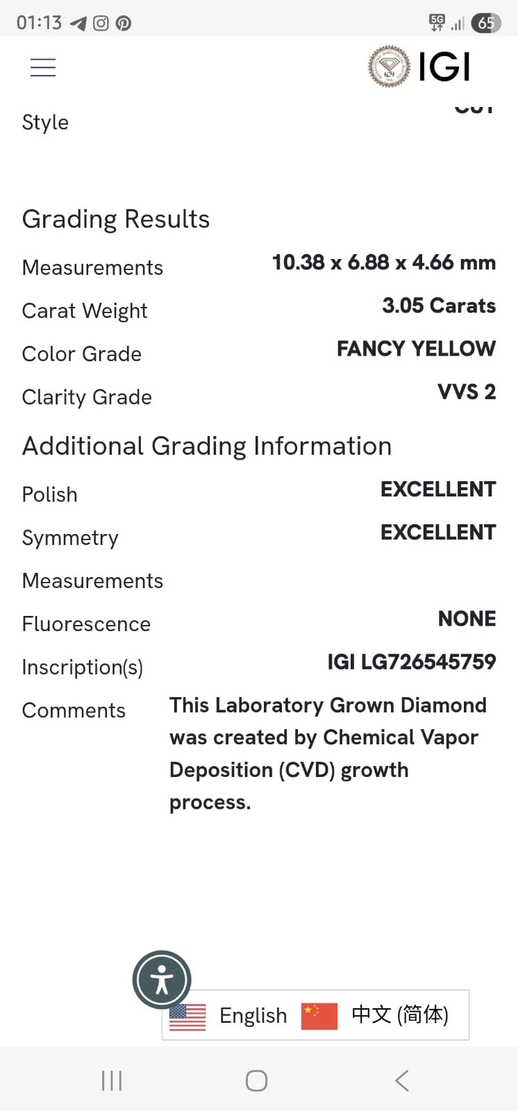 - IGI certified VVS2, fancy yellow
