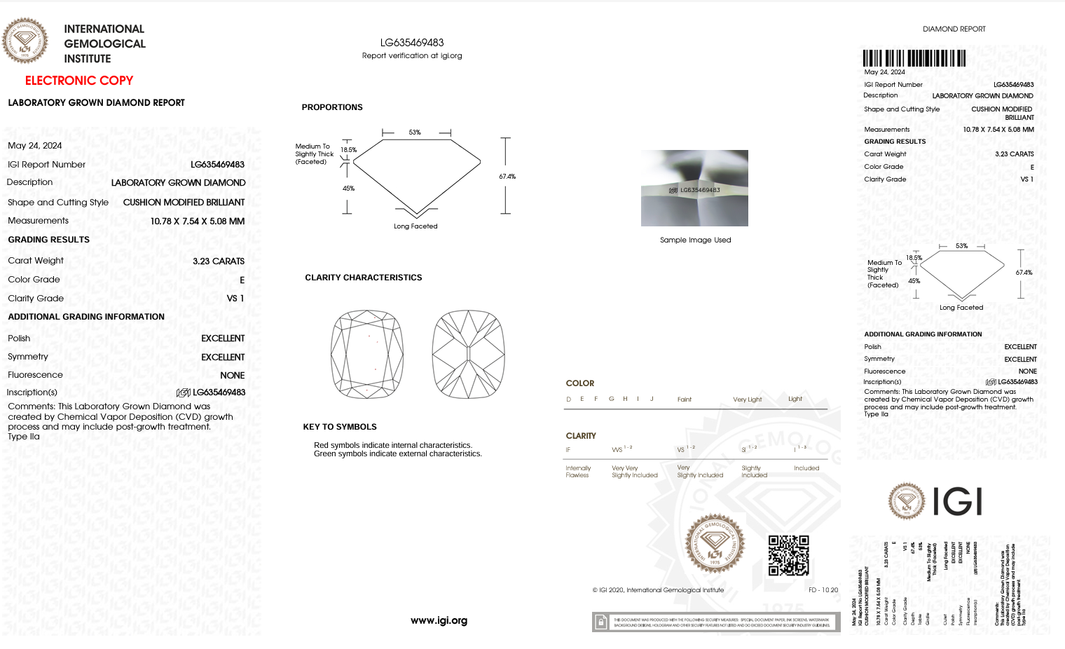 3.23 CARAT ANTIQUE CUSHION LAB DIAMOND