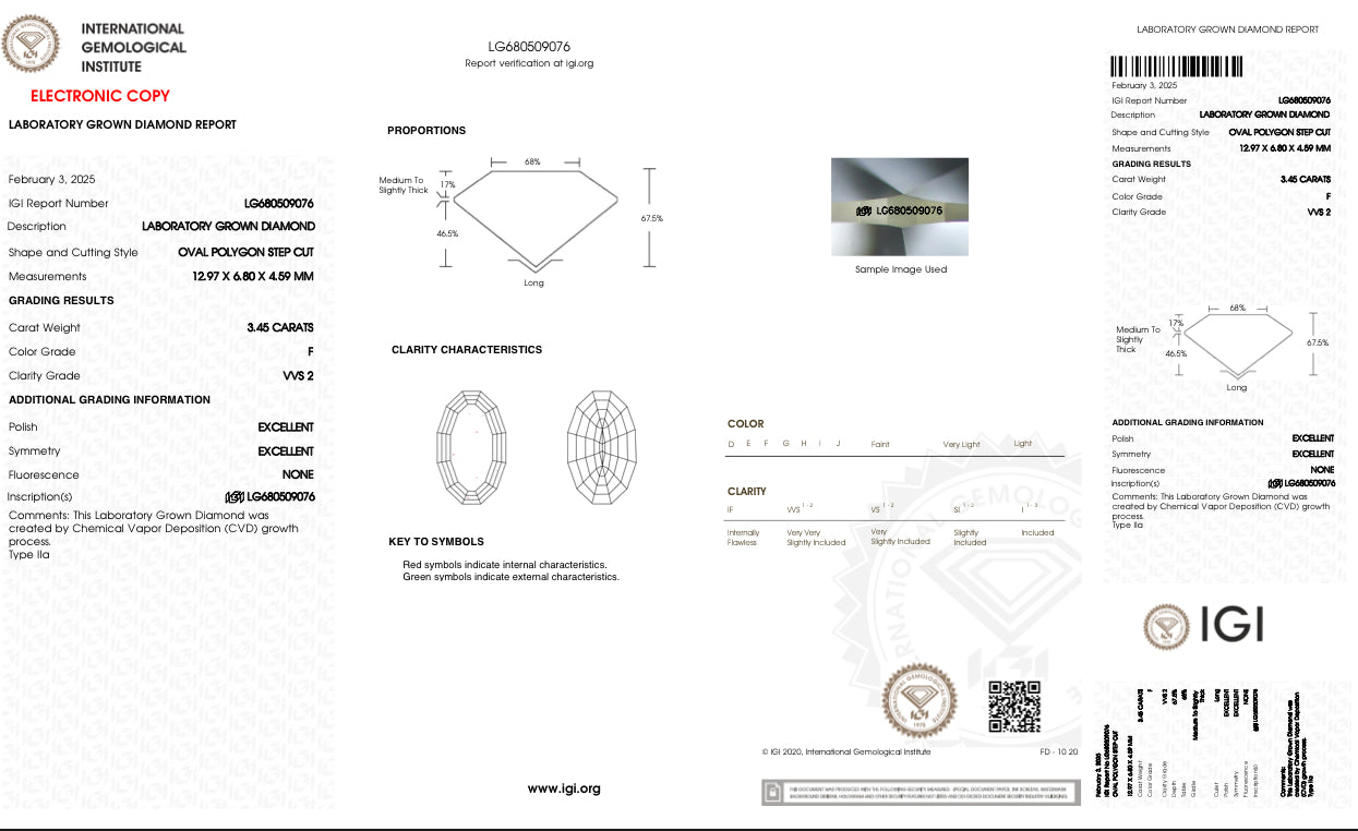 3.45 CARAT STEP CUT MOVAL LAB GROWN DIAMOND