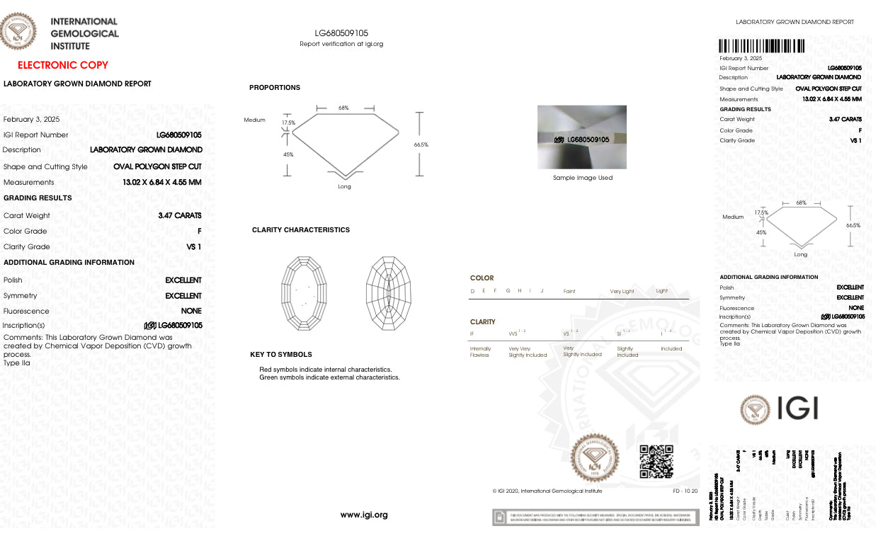 3.47 CARAT STEP CUT MOVAL LAB DIAMOND