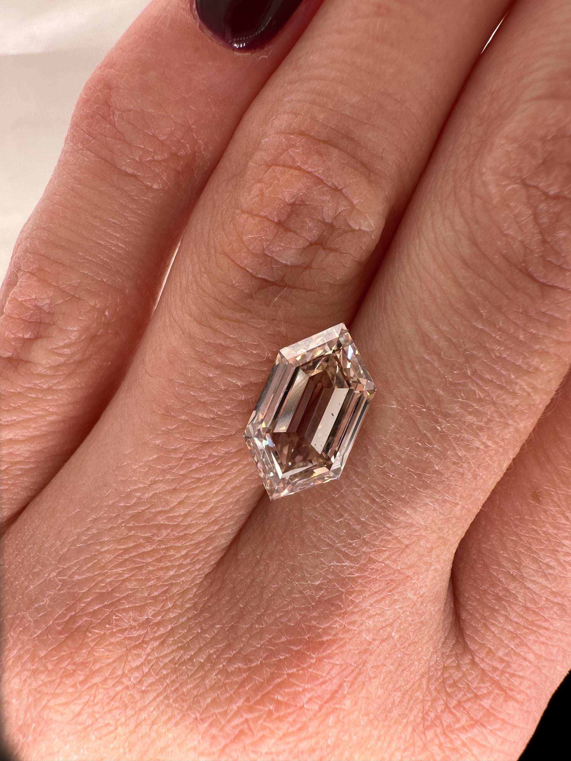 4.01 CARAT LIGHT BROWN/CHAMPAGNE HEXAGON LAB DIAMOND
