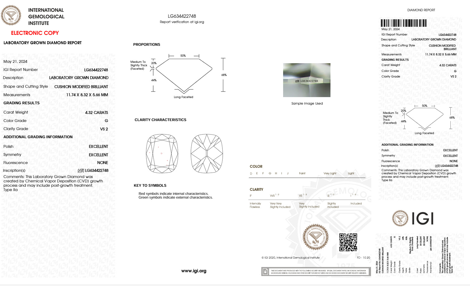 4.32 CARAT ANTIQUE CUSHION LAB DIAMOND