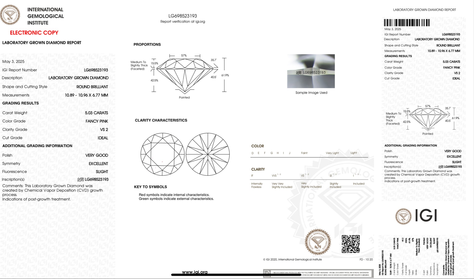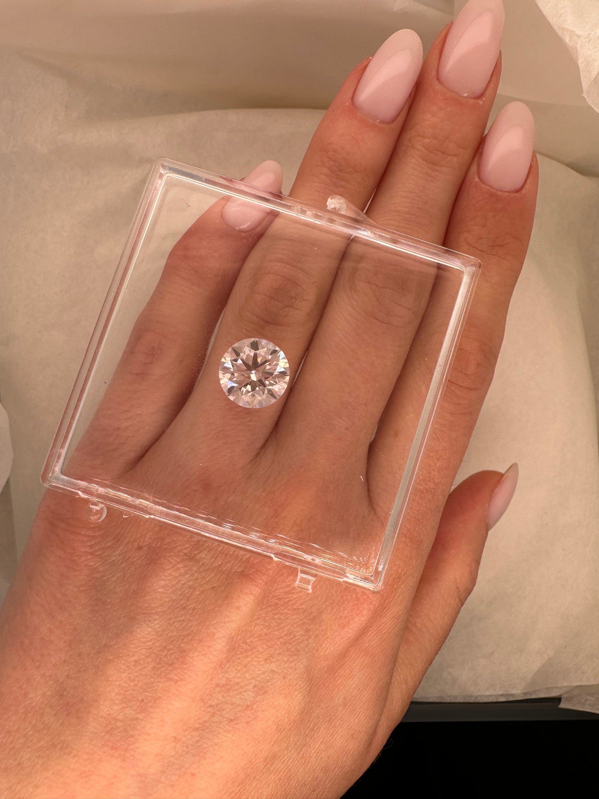 - 5.03 fancy pink round lab grown diamond (very subtle baby pink color)