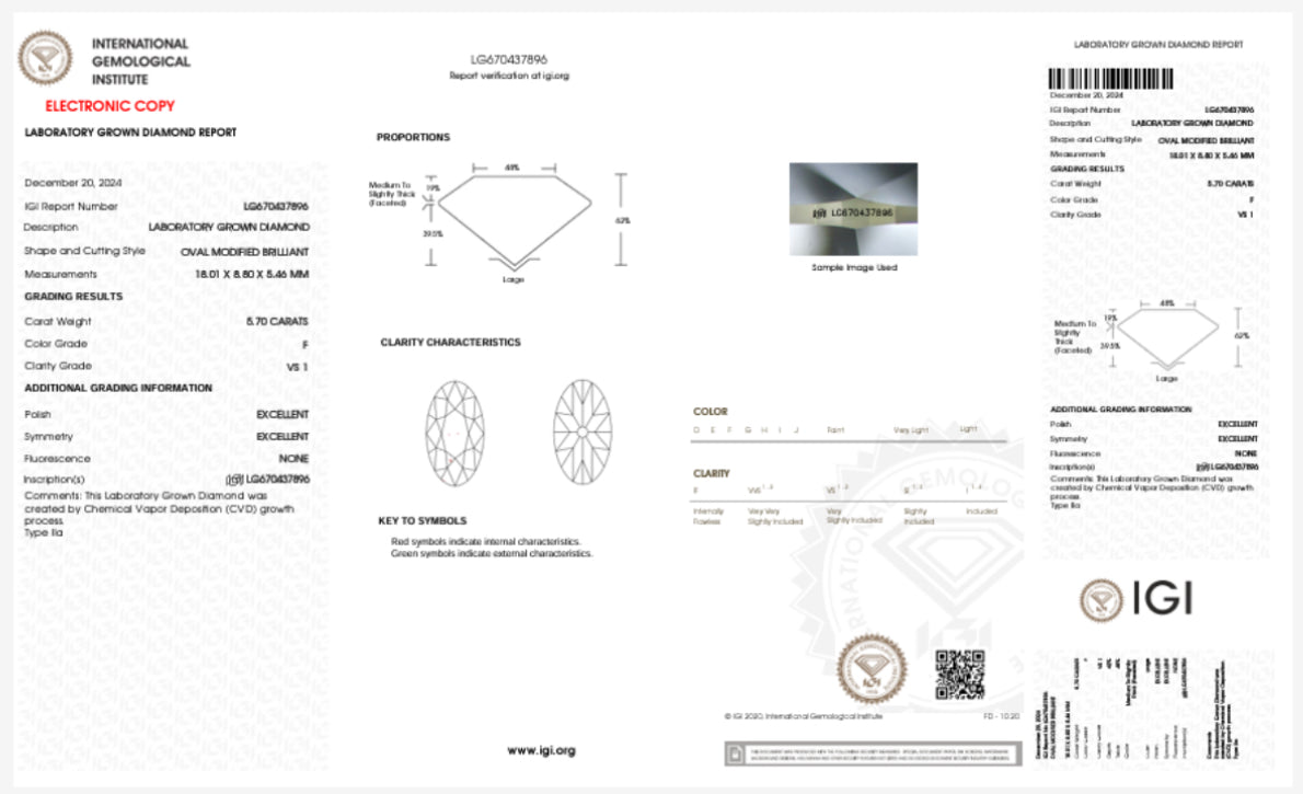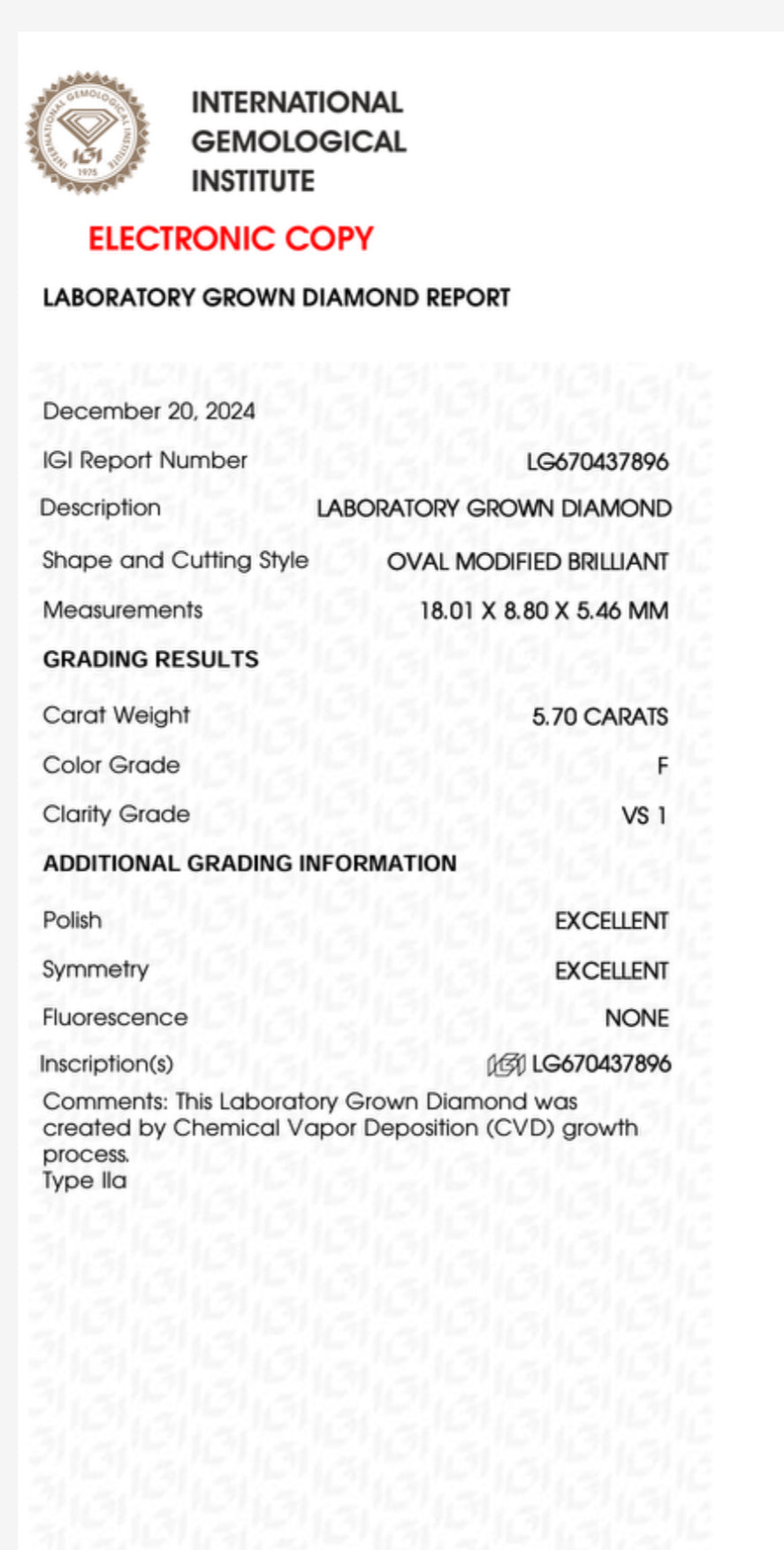 5.70 CARAT ANTIQUE MOVAL LAB DIAMOND