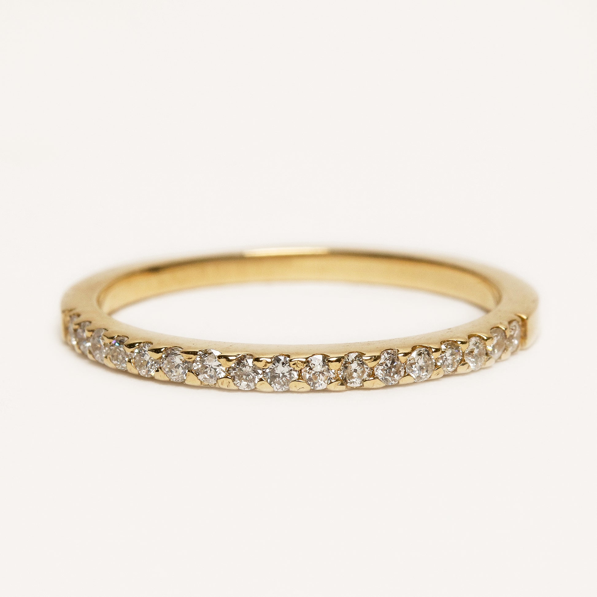 Simple full or half diamond band. Available in 18k white, yellow, and rose gold.