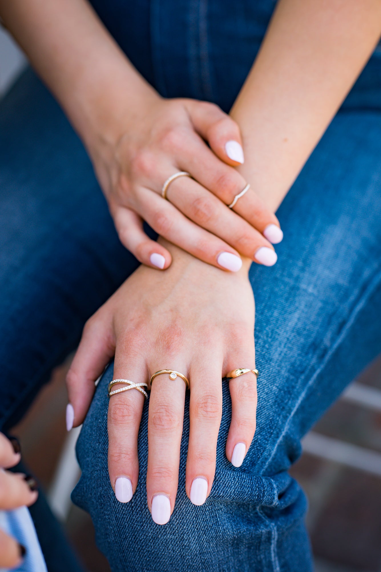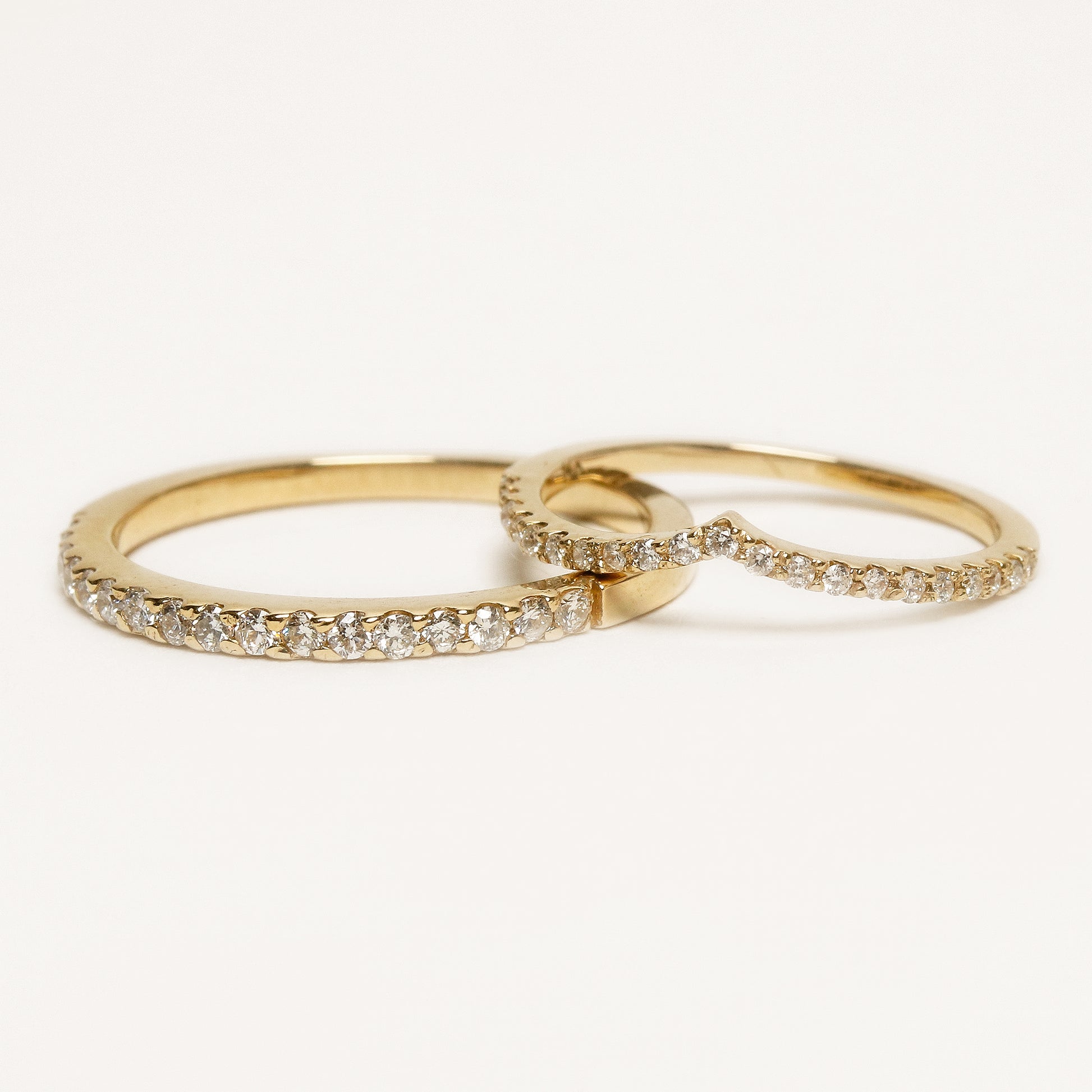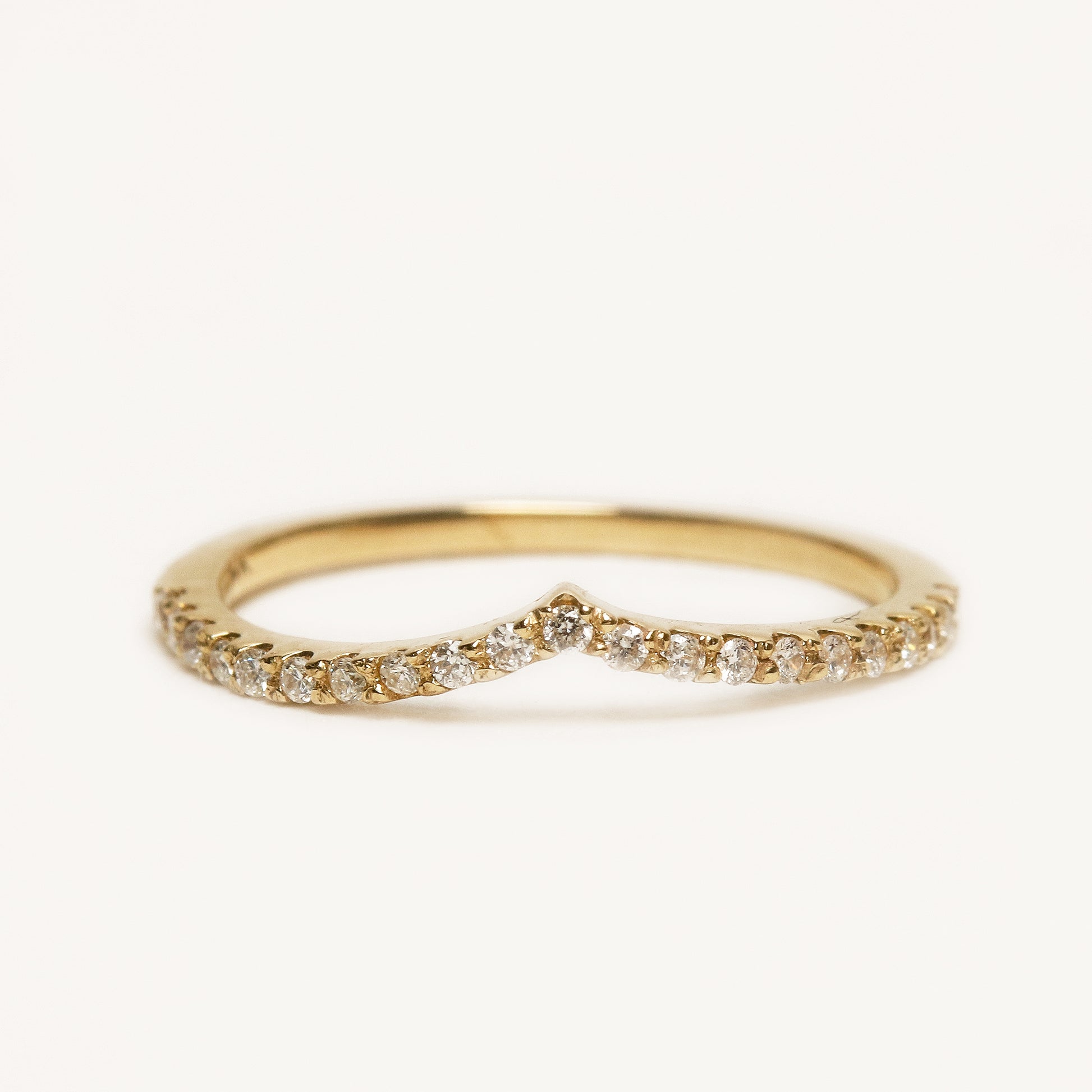 V-shaped diamond band, perfectly worn as both a midi ring or regular band. Available in 18k yellow gold, 18k white gold, and 18k rose gold.