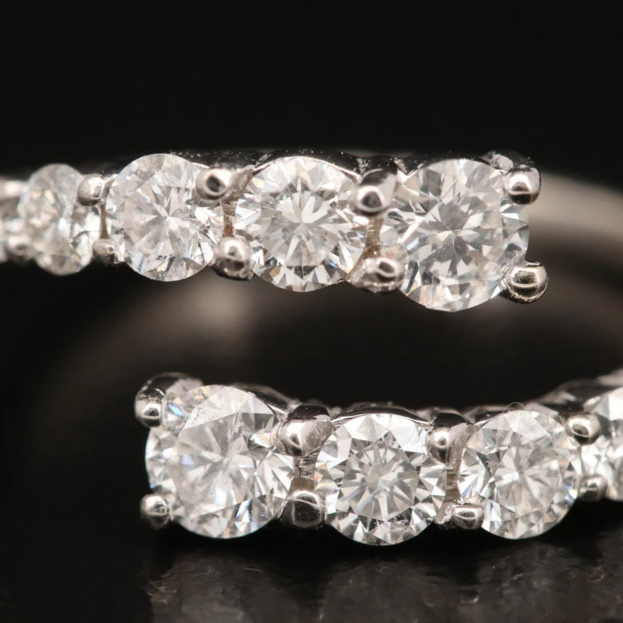 This graduated 14K white gold ring is set with VS quality diamonds that wrap around your finger.