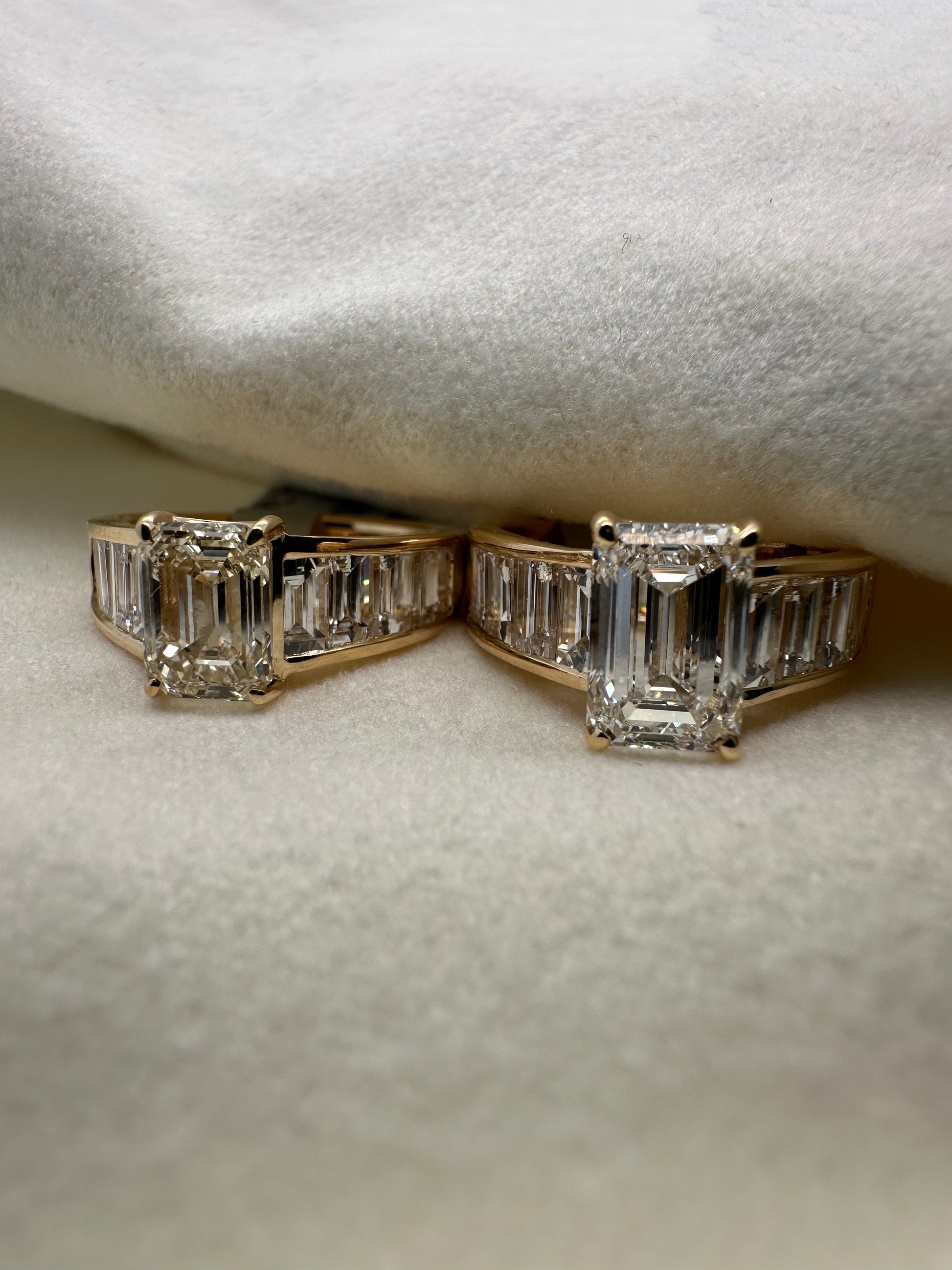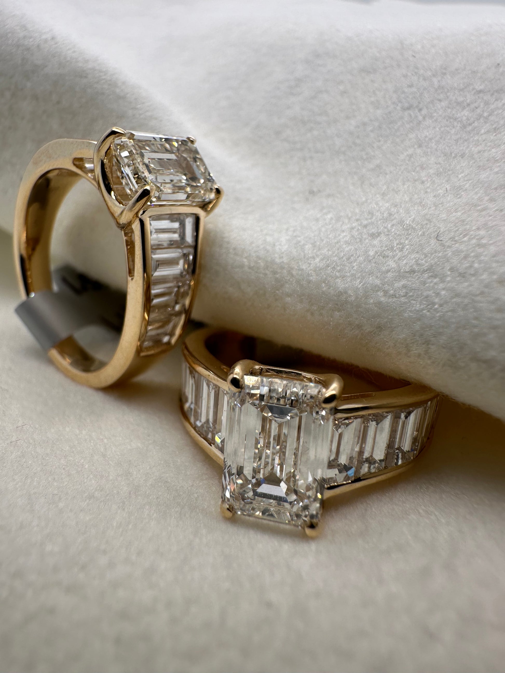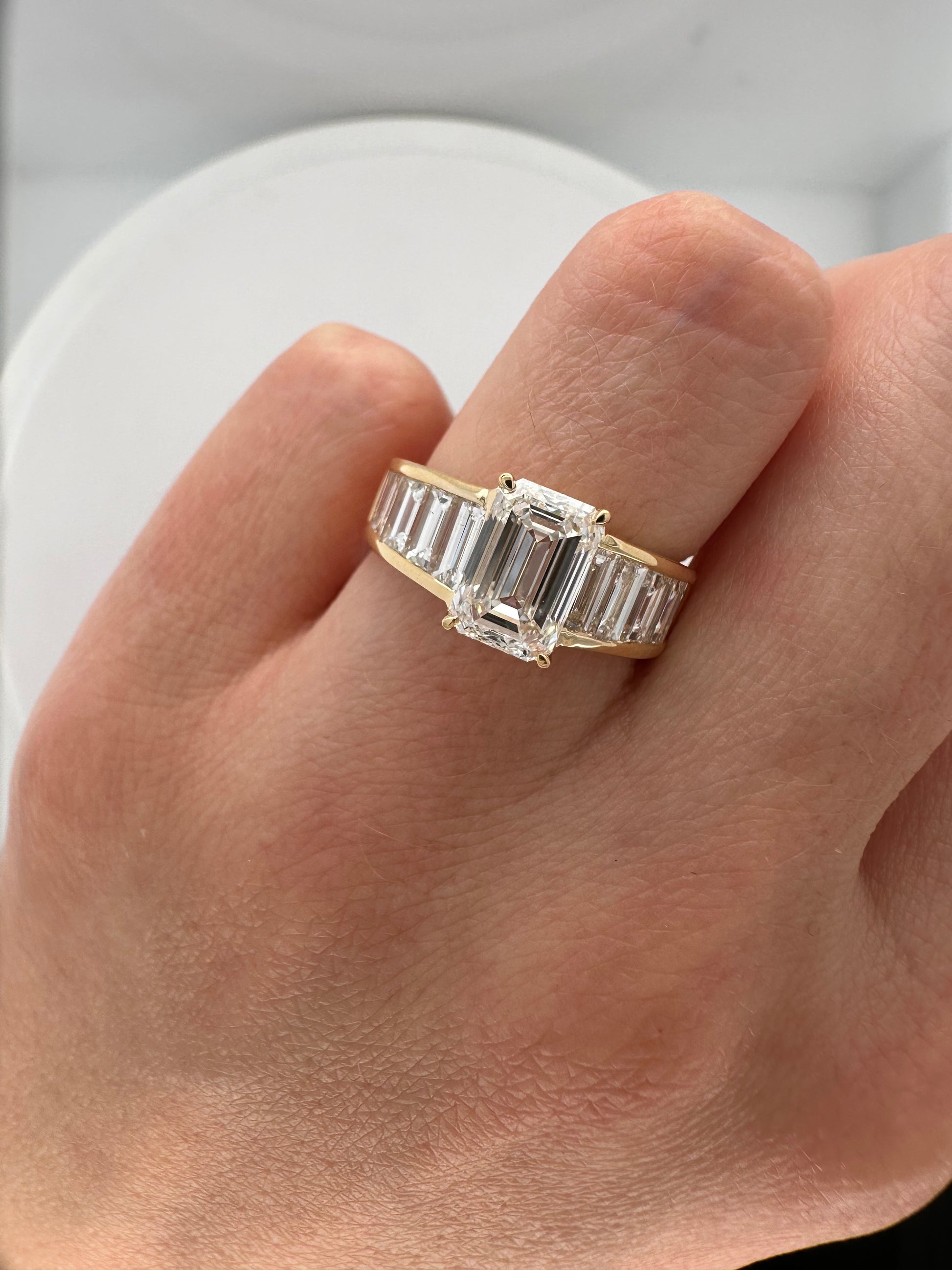 EMERALD CUT AND BAGUETTE CHANNEL DIAMOND RING
