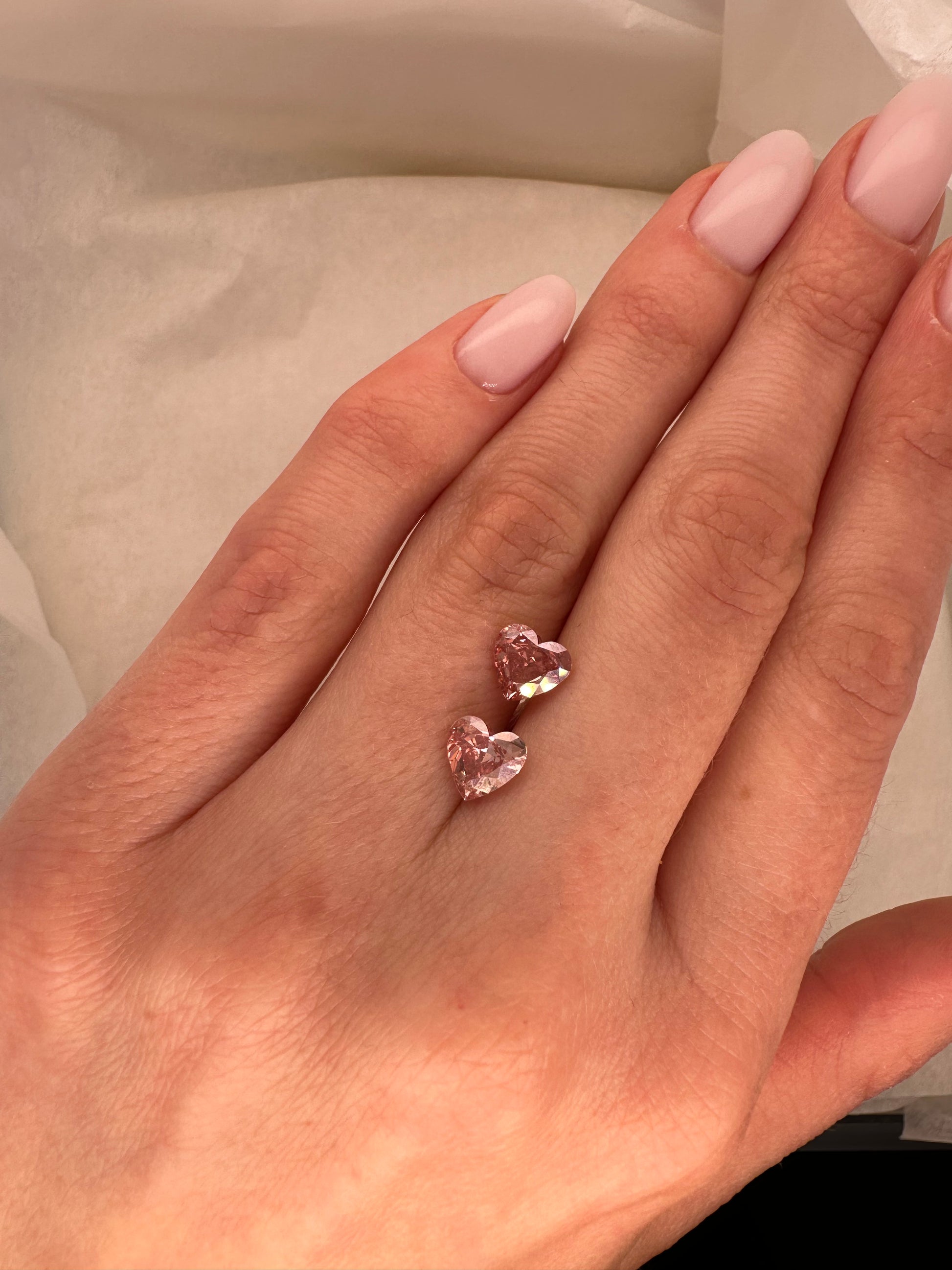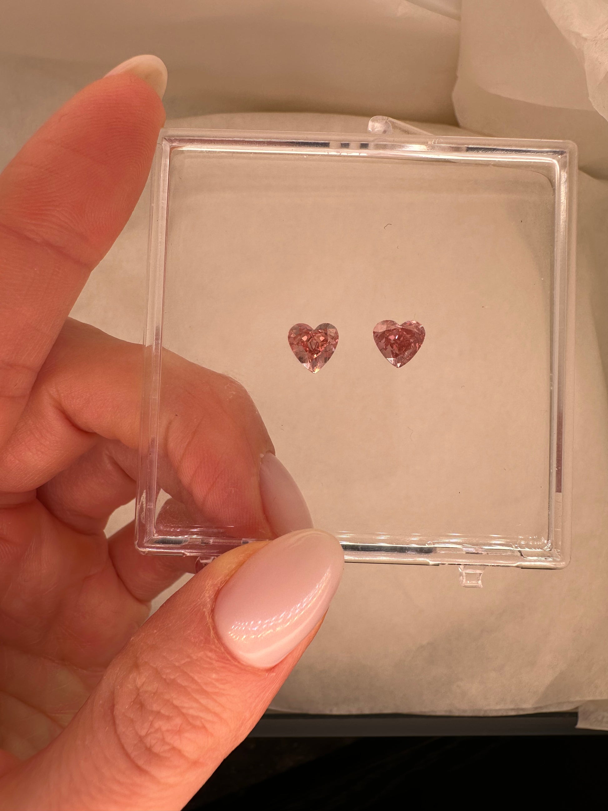 MATCHING PAIR: 2 CTW PINK HEART LAB DIAMONDS