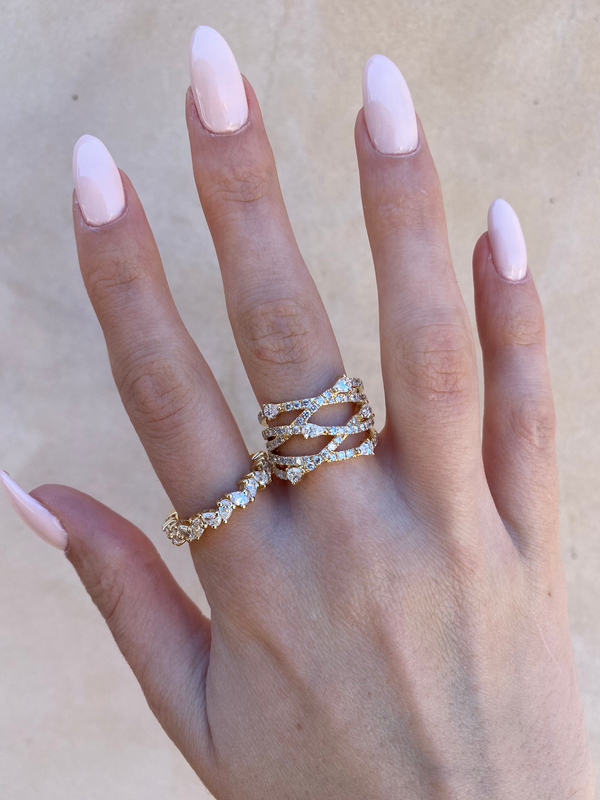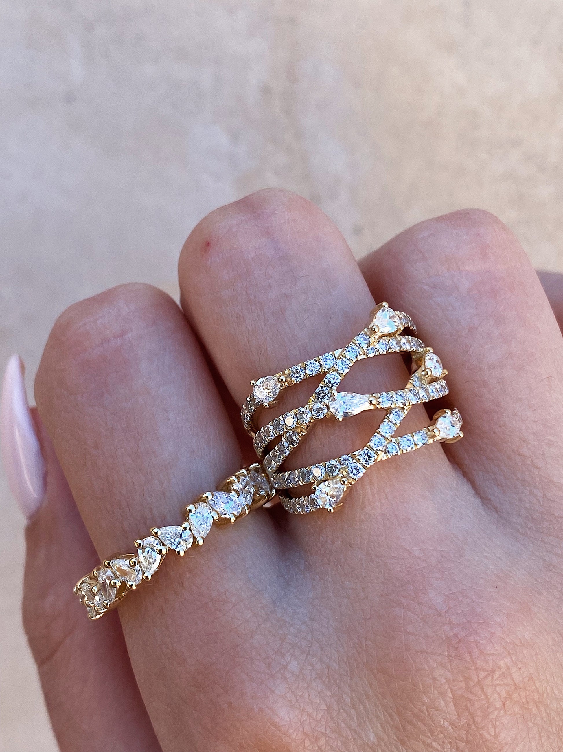 OPEN WORK DIAMOND AND PEAR STATEMENT RING