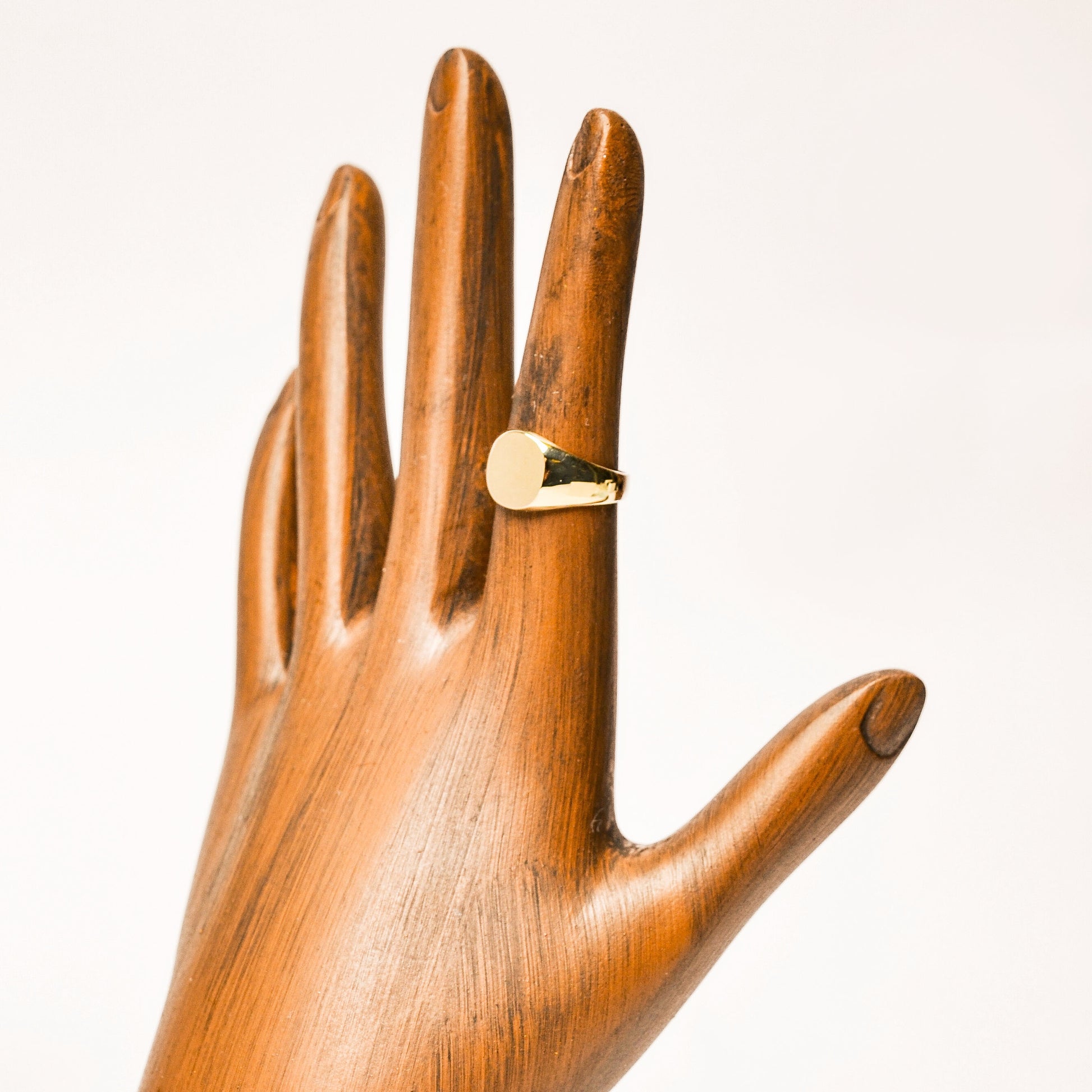 Solid 14k gold signet ring. Perfect as a pinky ring. Pair with ripped boyfriend jeans and a white tee.