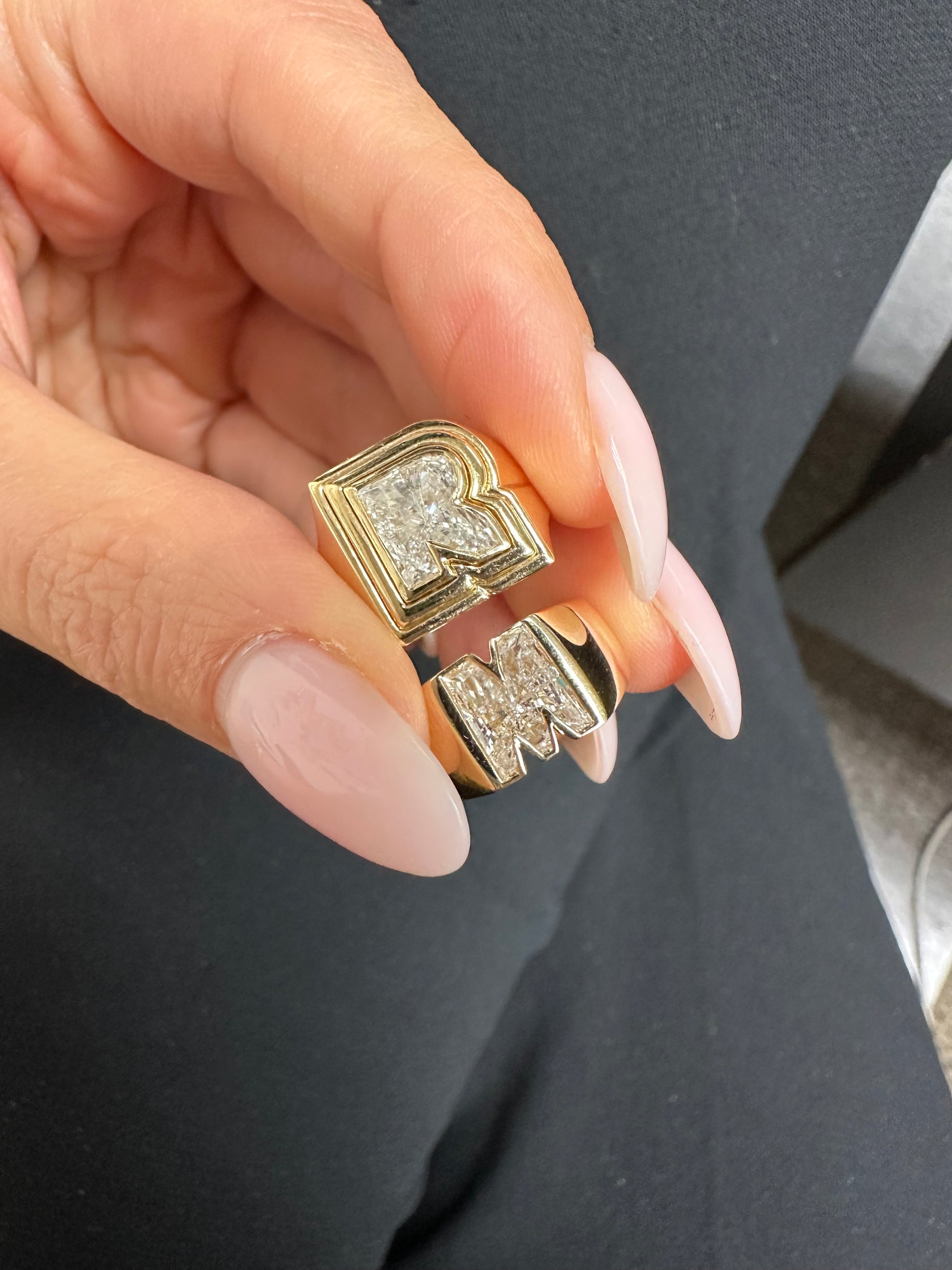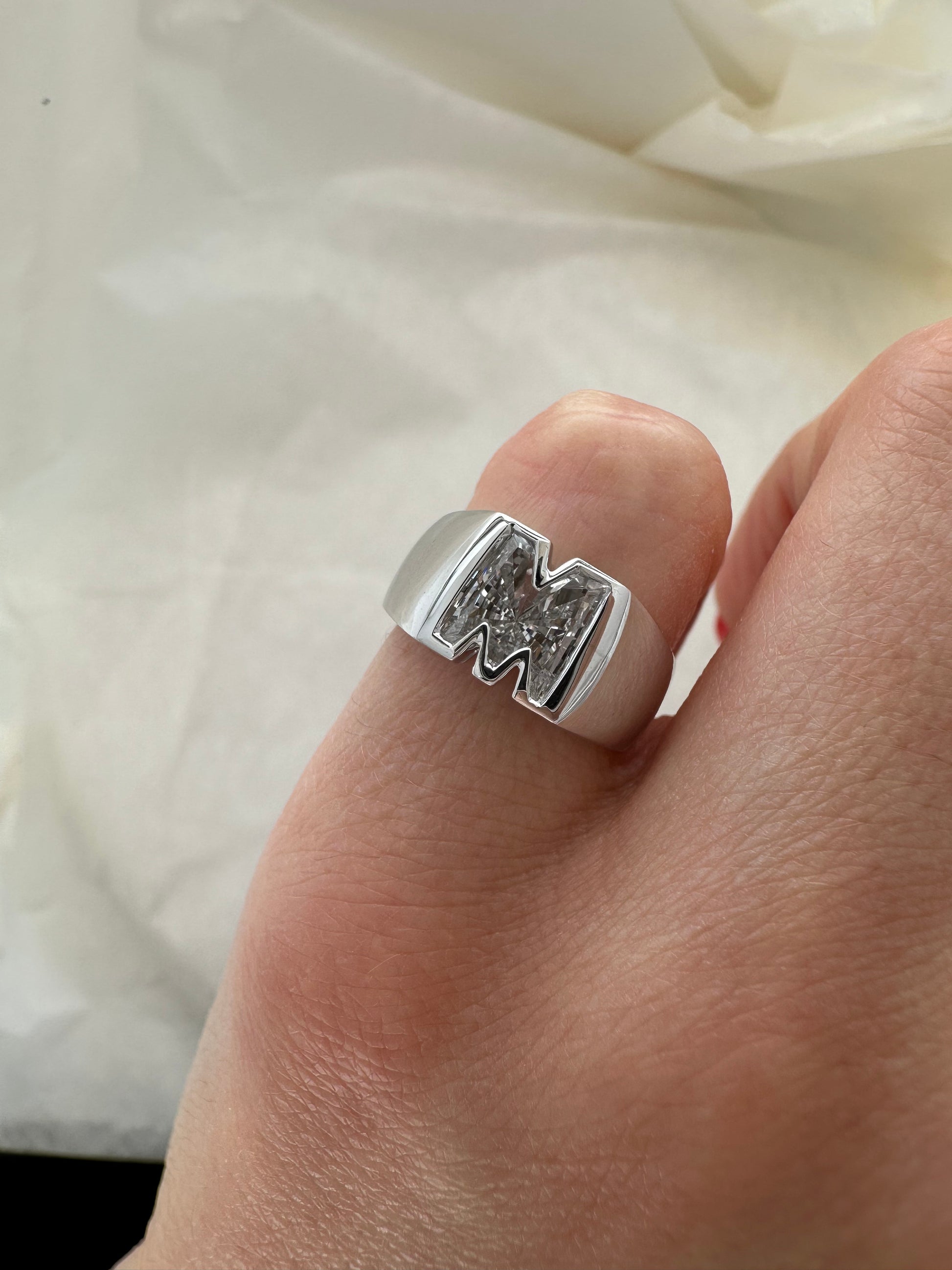 - please note lead time for this ring is approximately 6-10 weeks for production as each letter is custom cut to its shape and then custom made for your ring!