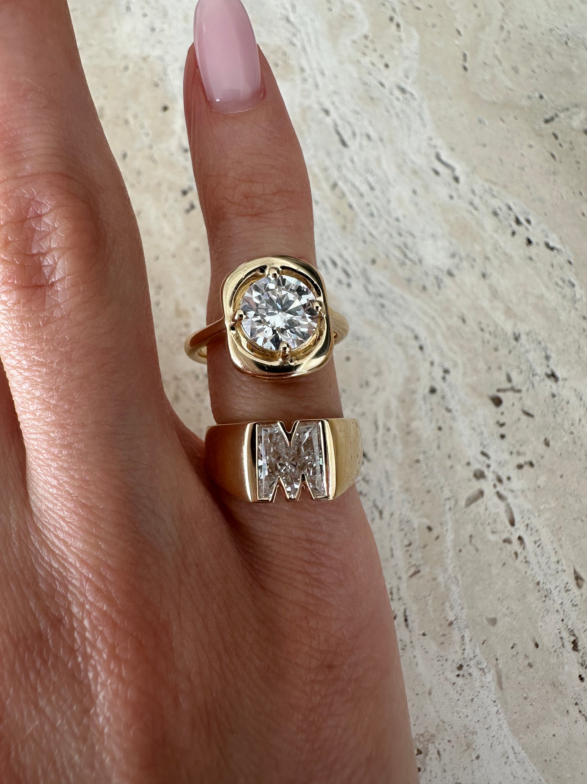 FLOATING BEZEL LAB DIAMOND LETTER RING